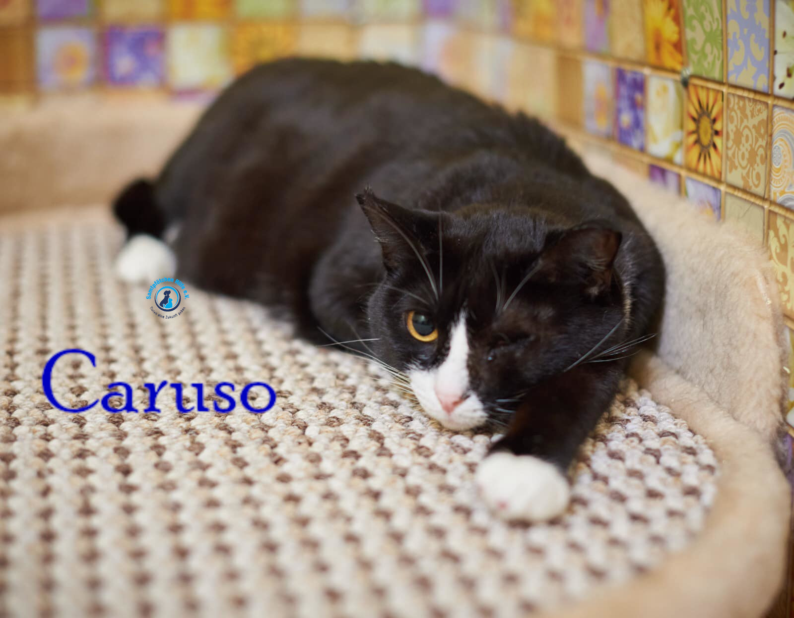 Bei seinem Auffinden war er vor Verzweiflung sehr zutraulich. Die erste Zeit auf der Pflegestelle musste er sich an die menschliche Nähe erst gewöhnen, kam jedoch mit den freundlichen Samtpfötchen sofort zurecht und wie Lyudmila schreibt, weiß Caruso nun die Menschen zu schätzen, auch wenn er Fremden gegenüber wahrscheinlich zunächst vorsichtig sein wird.