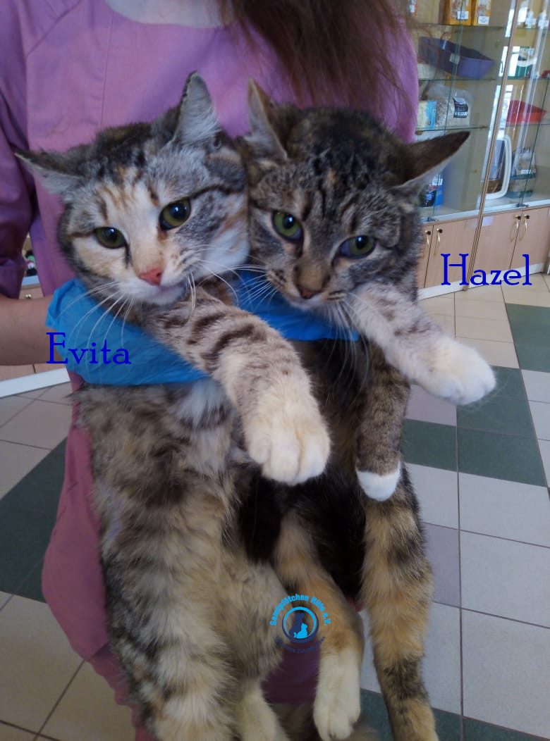 Unser hübsches Katzenduo, die Schwesterchen Hazel und Evita verbringen immer noch sehr oft die Zeit zusammen und wir möchten, dass beide dann in ein gemeinsames Zuhause umziehen können.